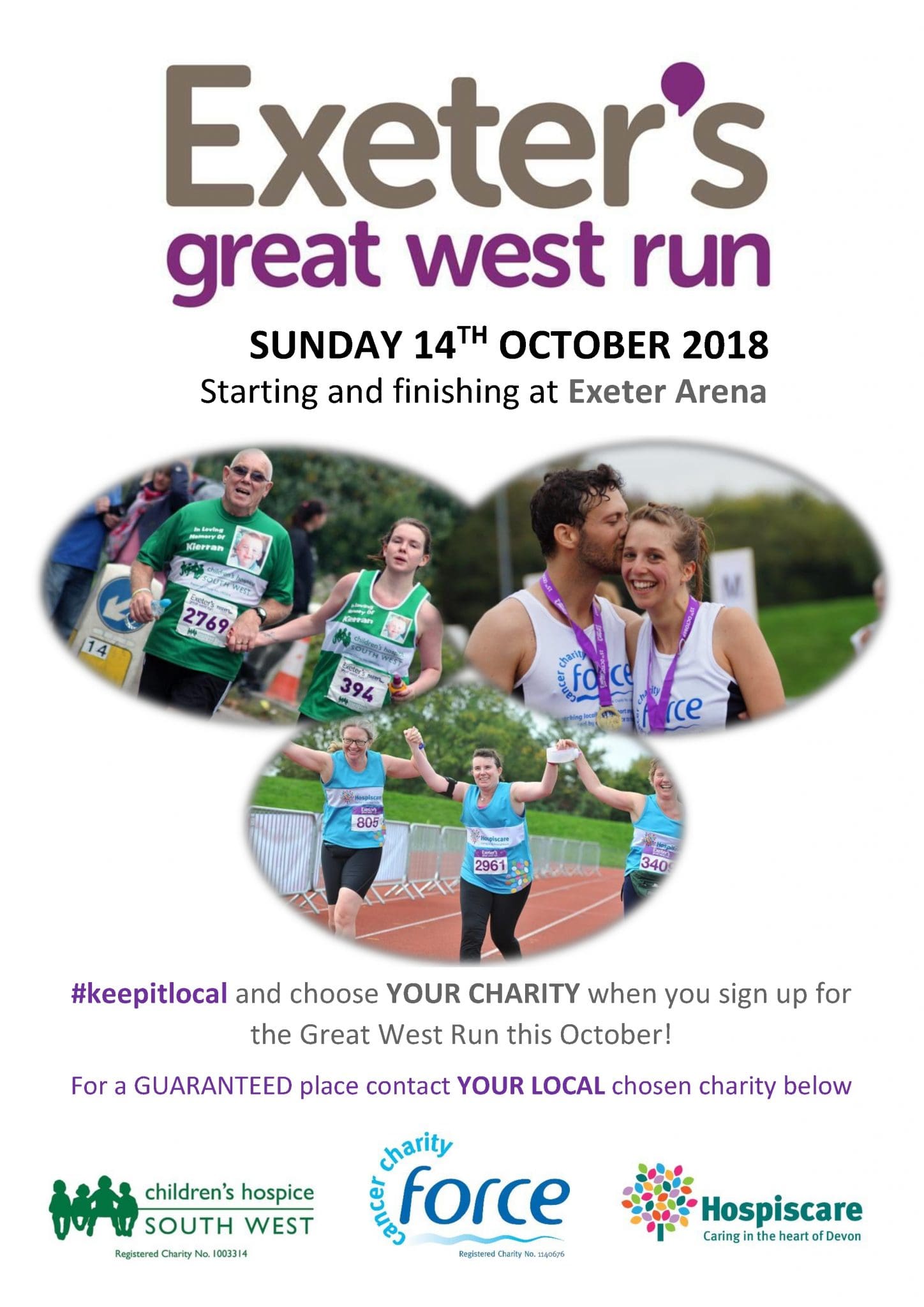 All three charities will be in Princesshay on Friday May 4 from 11:30 to 3pm to promote #keepitlocal with opportunities to sign up for the Great West Run.